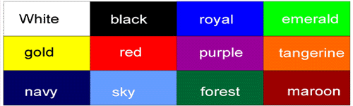 Trim and bindings available in any combination of the colours displayed below. Mix'n'Match to get the colour scheme you want.